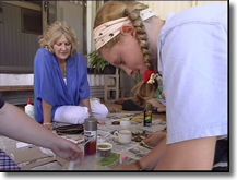 After the lesson Jack has quiet time to work alone on his projects. Some times a tutor will come to help him through certain subjects. His sister did the same lessons 3 years ago so he can ask for her ideas and direction. His mum helps him too, making sure he studies at least 5 hours a day. He has writing books, pens and traditional learning materials organised in his desk. Each term he receives a learning package in the post with audio and videocassette tapes, library books and computer software. Once a year all of his friends go to a classroom in the town for one week. Jack’s favourite day was when they played football on Friday. During the week he got to know his teacher who he can phone on the free call 1800 number. They usually practice reading together. Jack is looking forward to camp again next year. He will spend time with his fellow students and teachers face to face. They are going on camp with the ‘townies’ who attend the school in town. One of the townies is in Jack’s study group. She is sick and can’t go to a standard school so she joined the School of the Air.