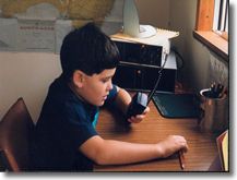Jack wakes up at dawn to feed the chickens and let them out of their coop. He then finds his Dad and helps with the other morning chores. Then it is back to the house at 7 am for some breakfast. 8 am is his scheduled class with his teacher. He leaves the kitchen and goes to the study room. He sits in front of the computer and waits for his classmates and teacher to come online. The microphone is in position so the small group will hear his contributions to the lesson. This system is called Interactive Distant Learning (IDL) He has seven half hour lessons using IDL with the School of the Air each week.